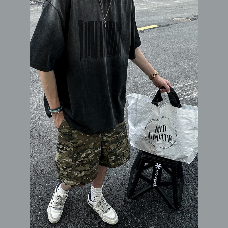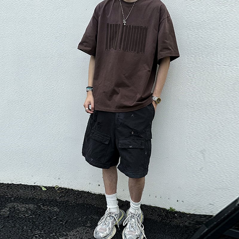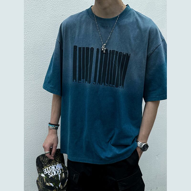 MANCHER英字プリントグラデーション半袖Tシャツ