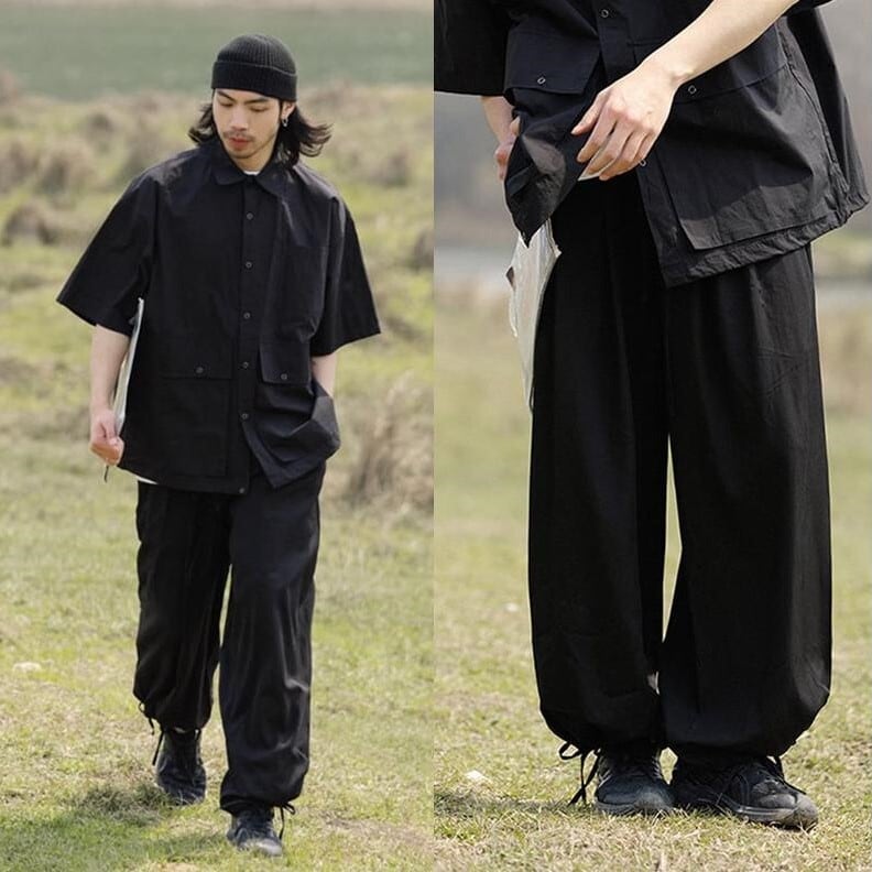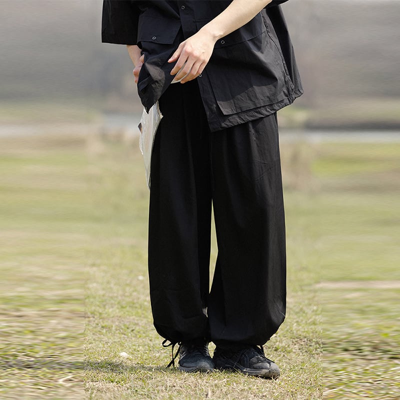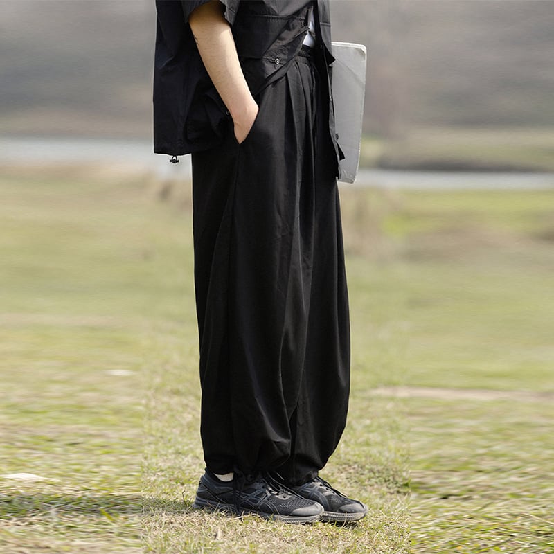 NOEARS漆黒色ドレープ感のあるスラックスパンツ