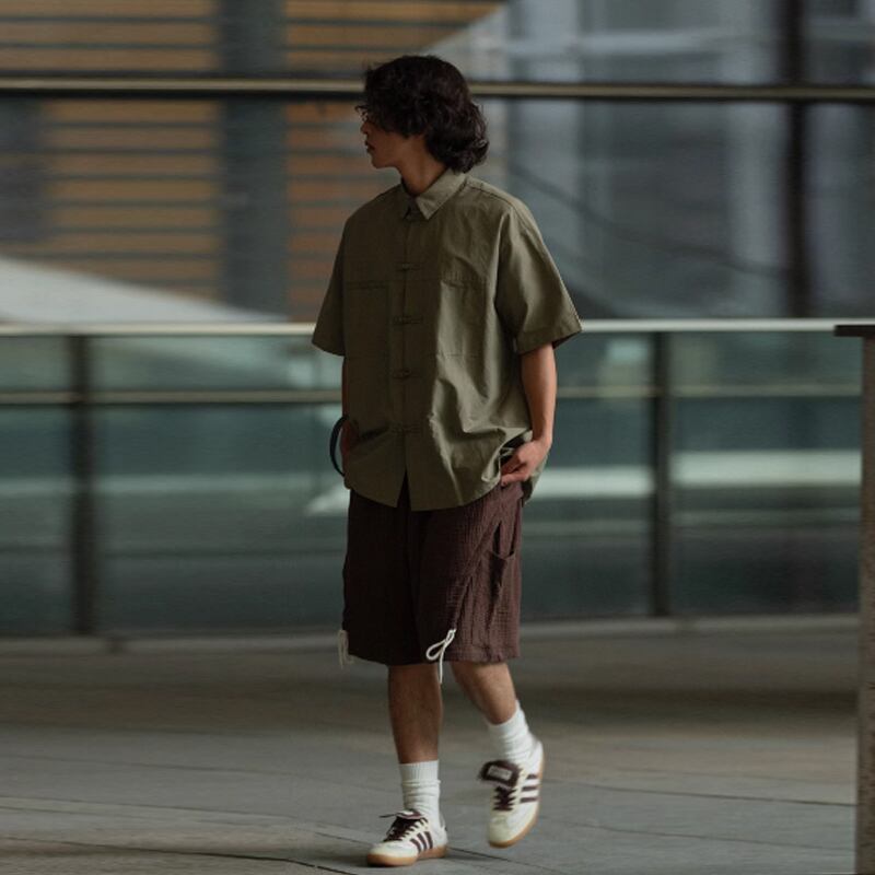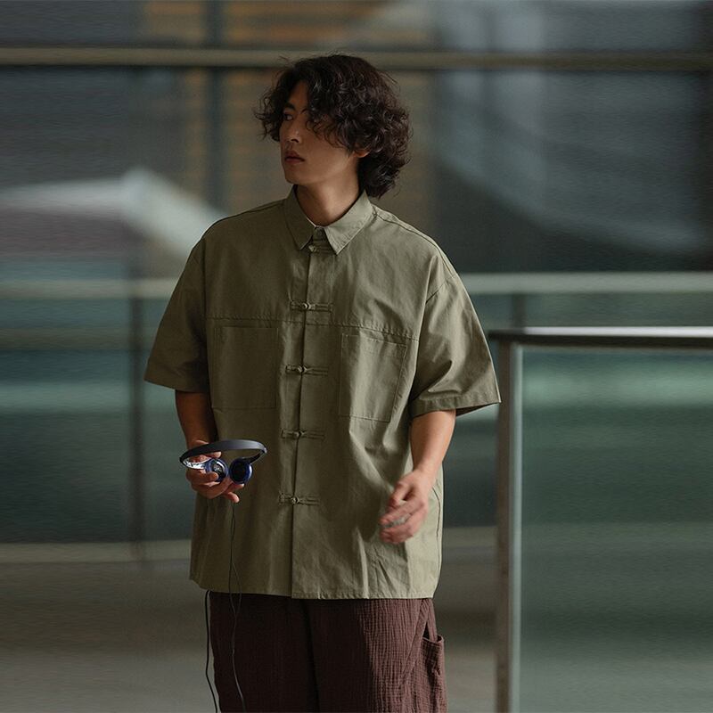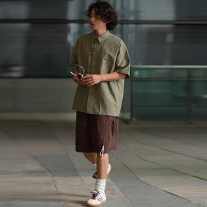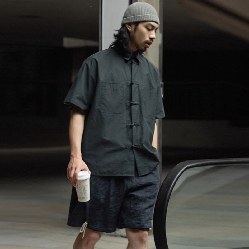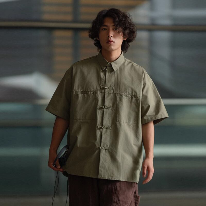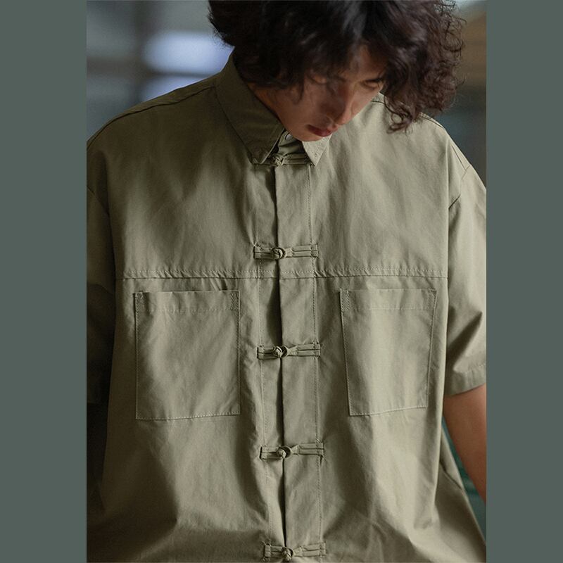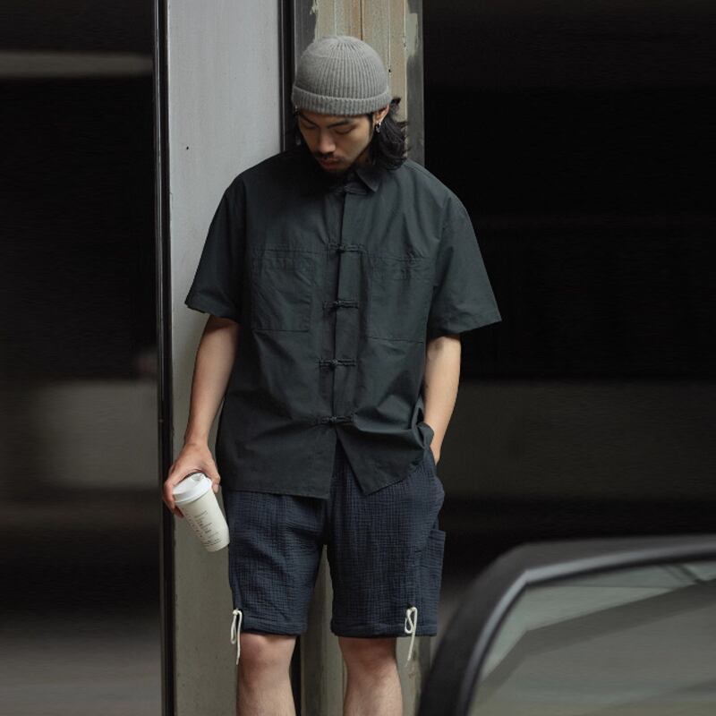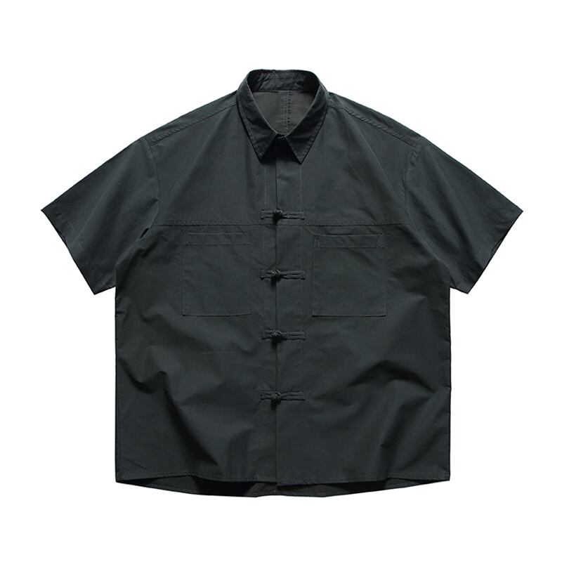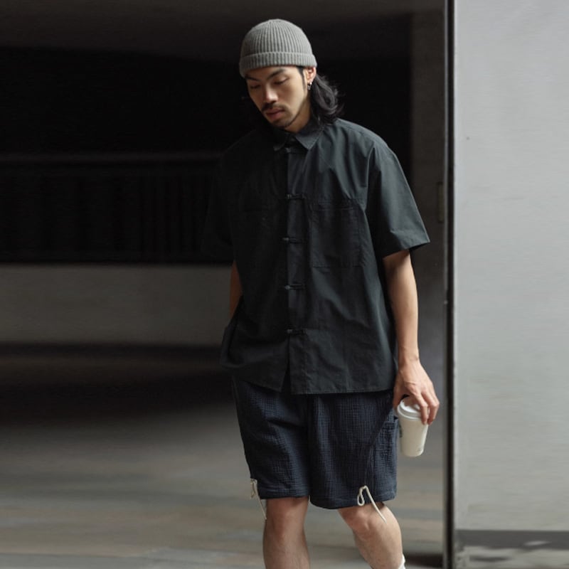 NOEARSチャイナ風パンコウデザイン半袖シャツ