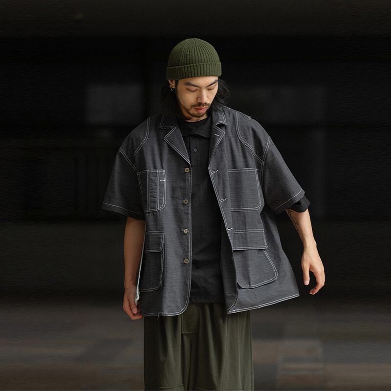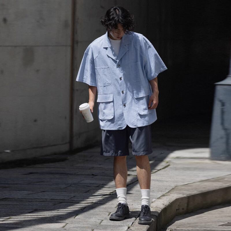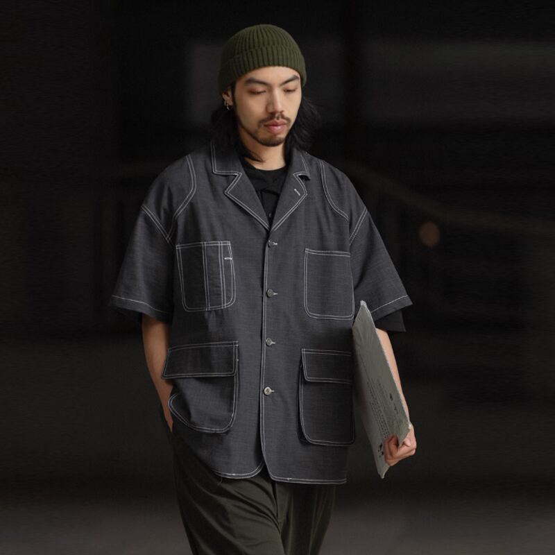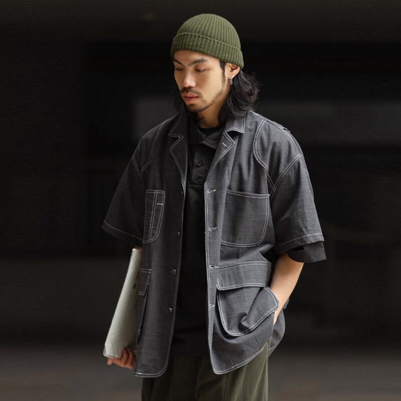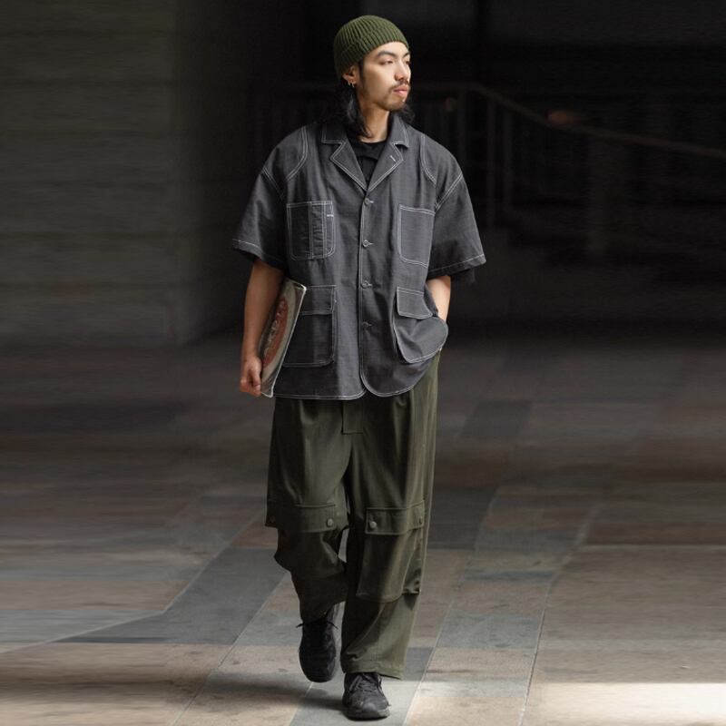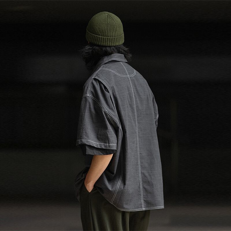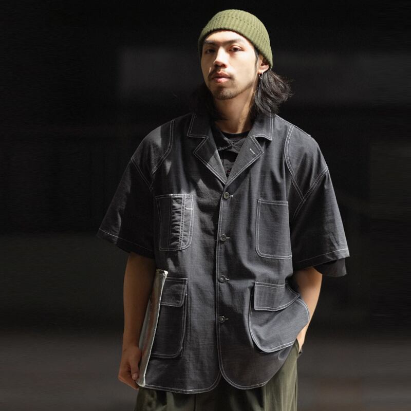 NOEARS黒灰色ラインデザイン半袖シャツ