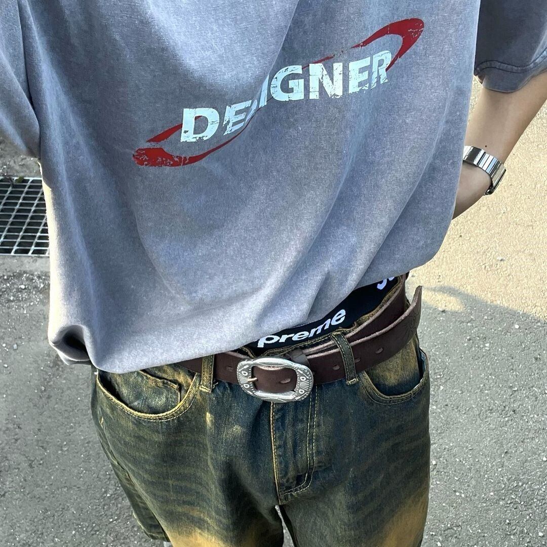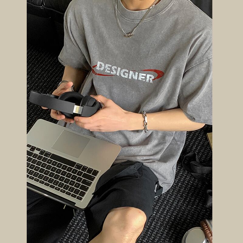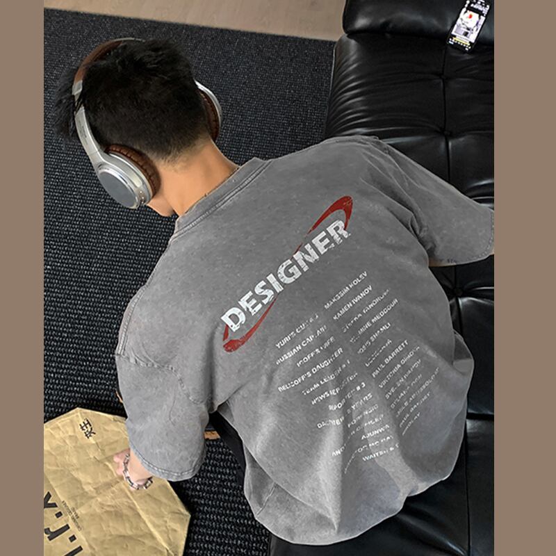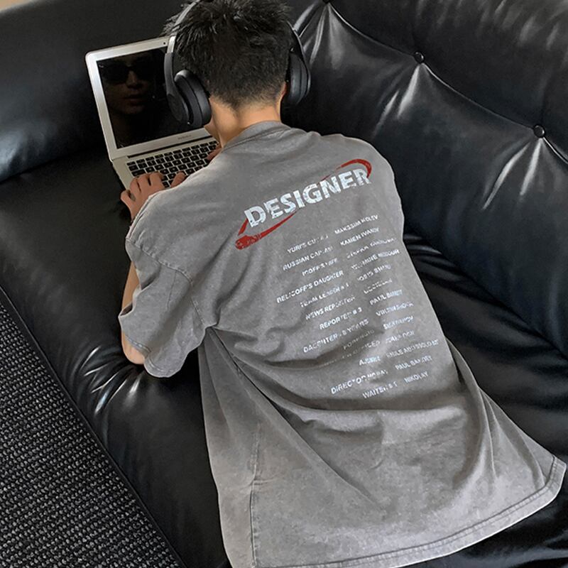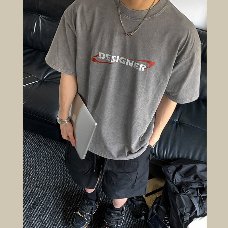 PLTHアメリカ風ウォッシュド前後英字ロゴ半袖Tシャツ