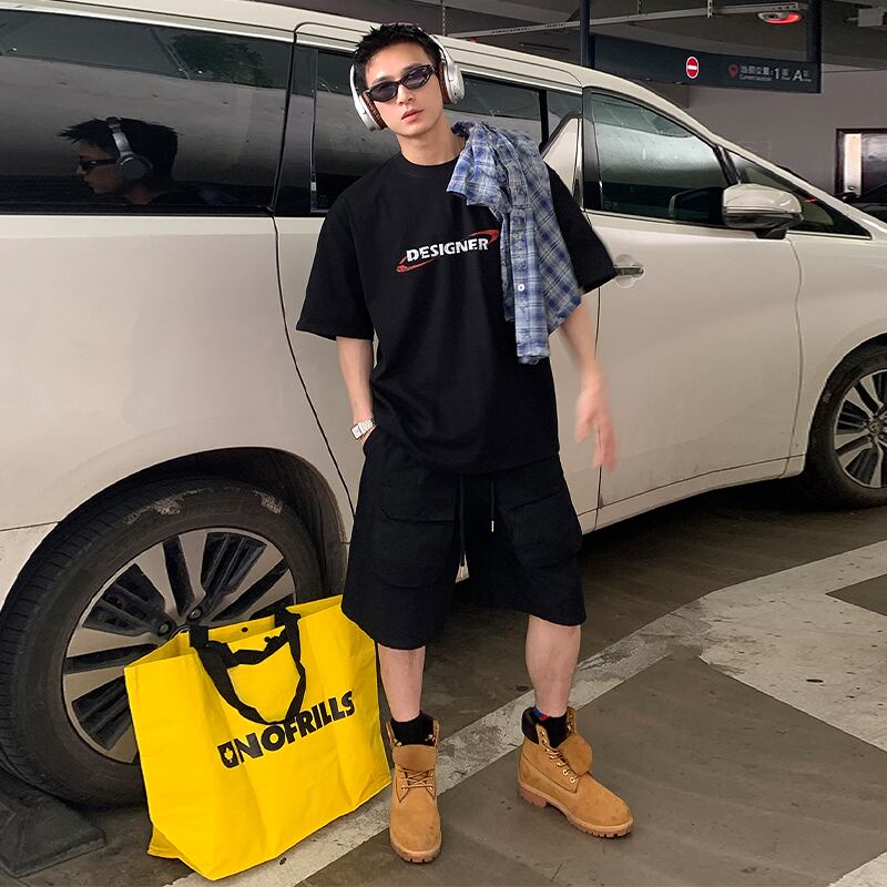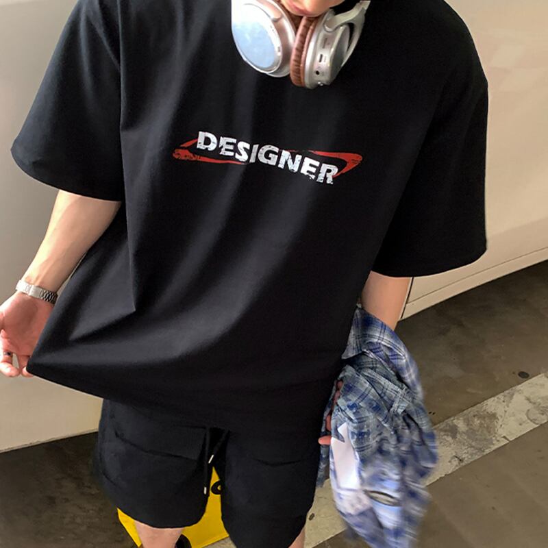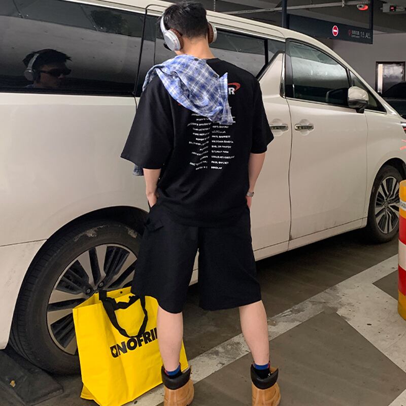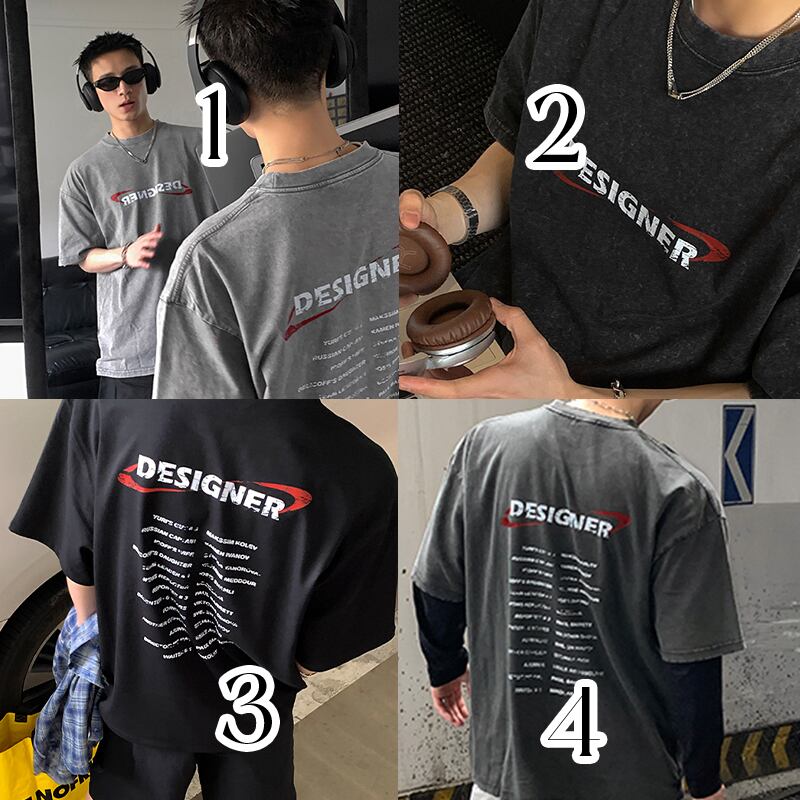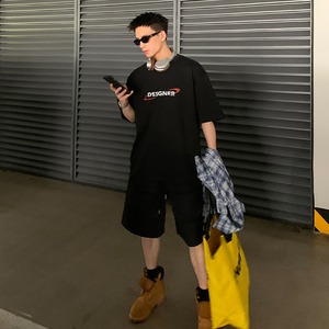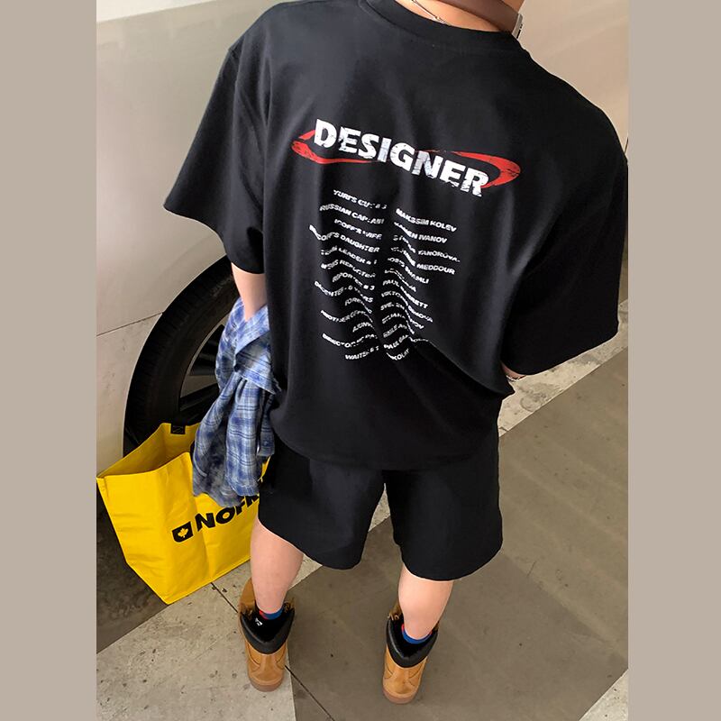 PLTHアメリカ風ウォッシュド前後英字ロゴ半袖Tシャツ