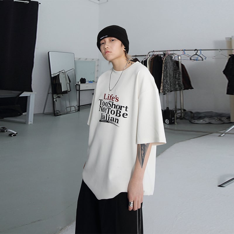 GRNLシンプル英字プリント半袖Tシャツ
