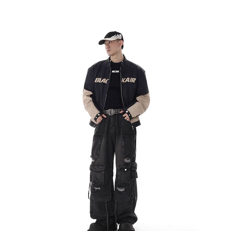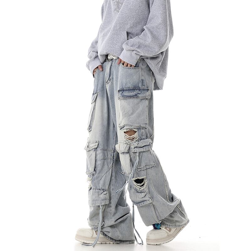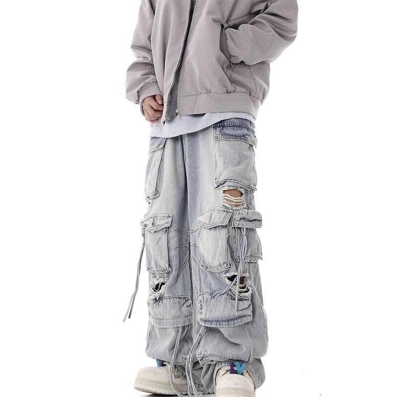 BLACKLISTS立体ポケット付きダメージデニムパンツ