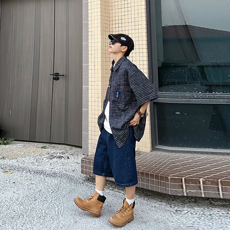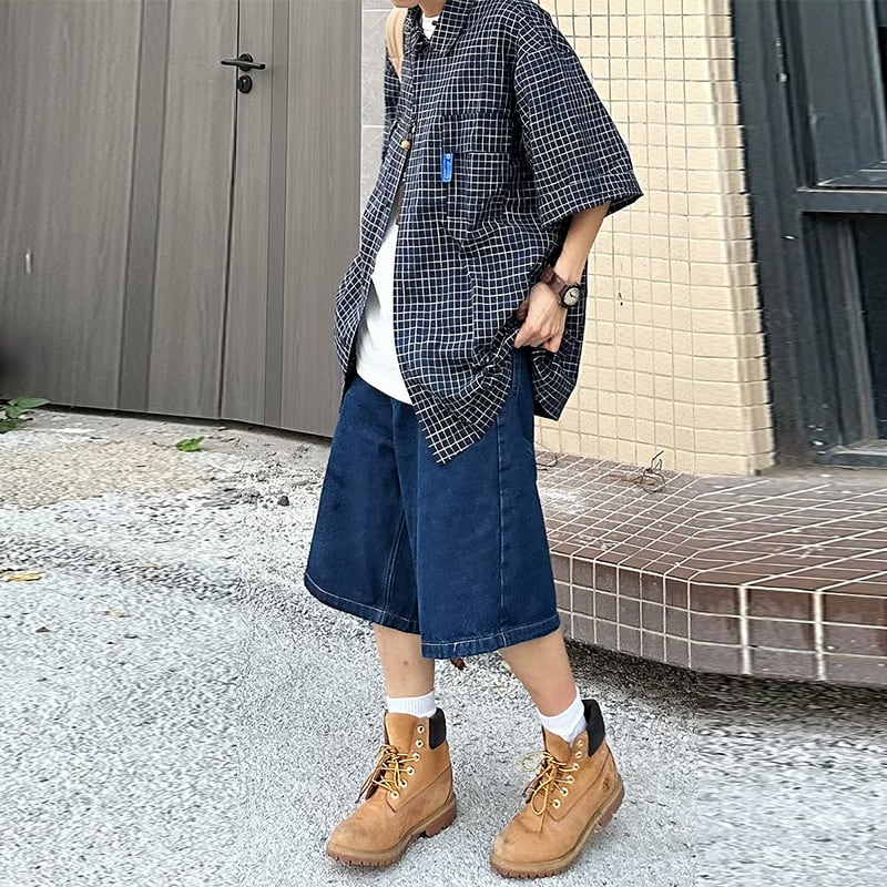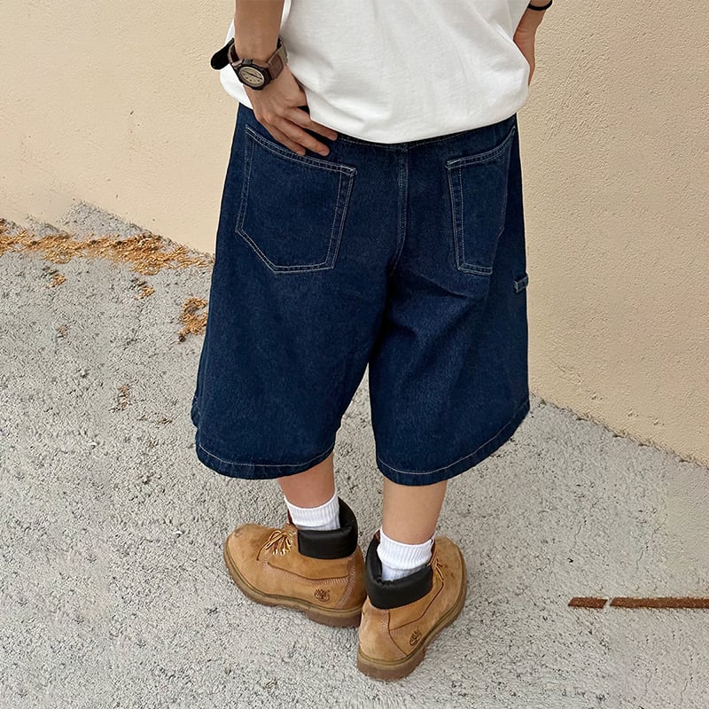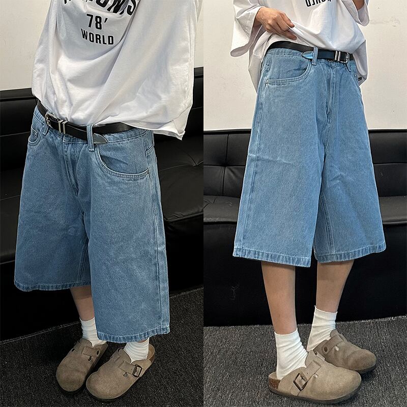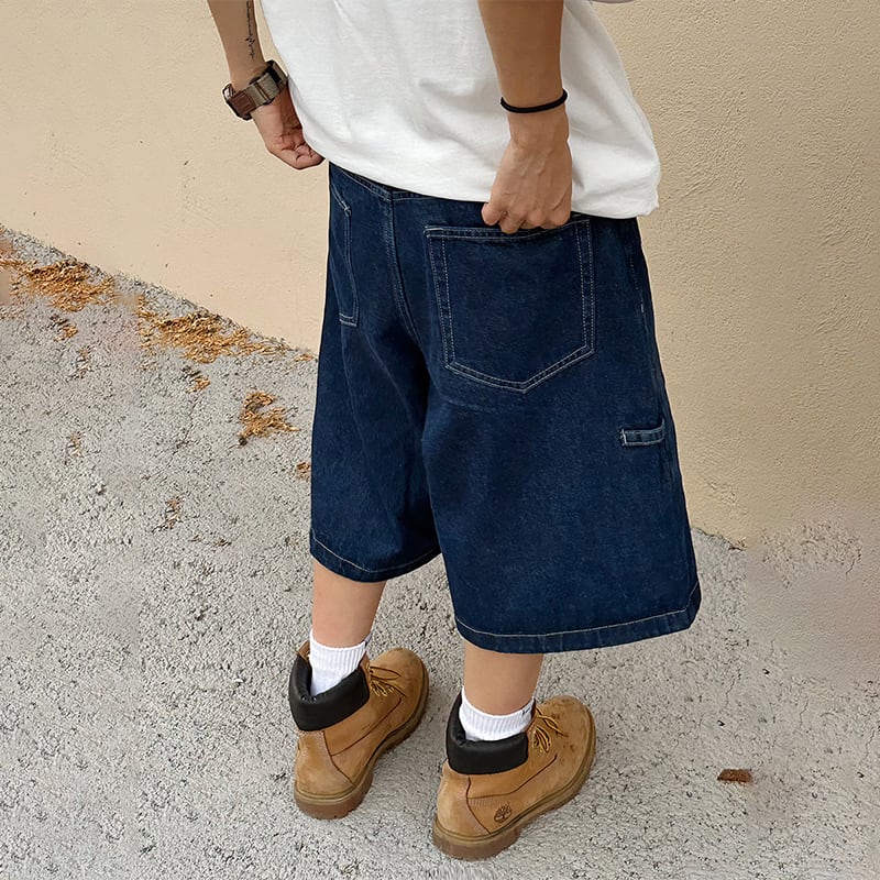 XBRO紺青色オールマッチデニム六分丈パンツ