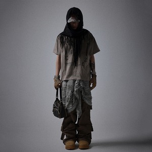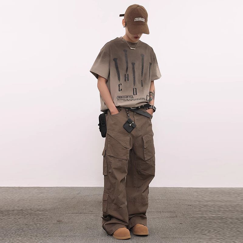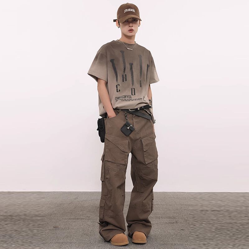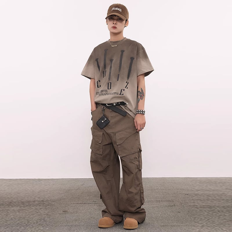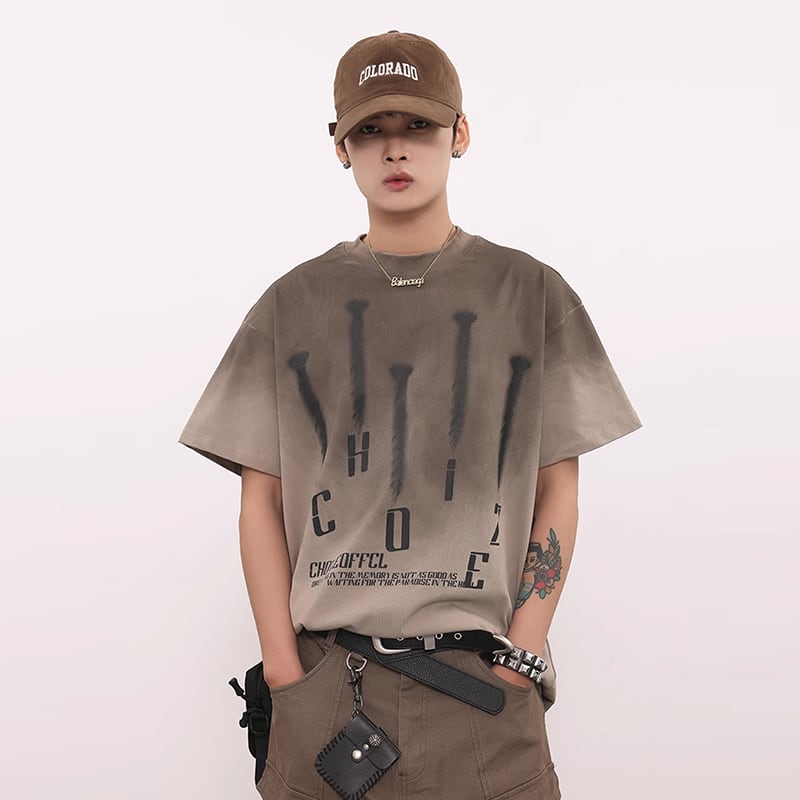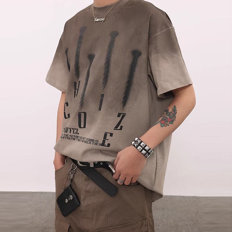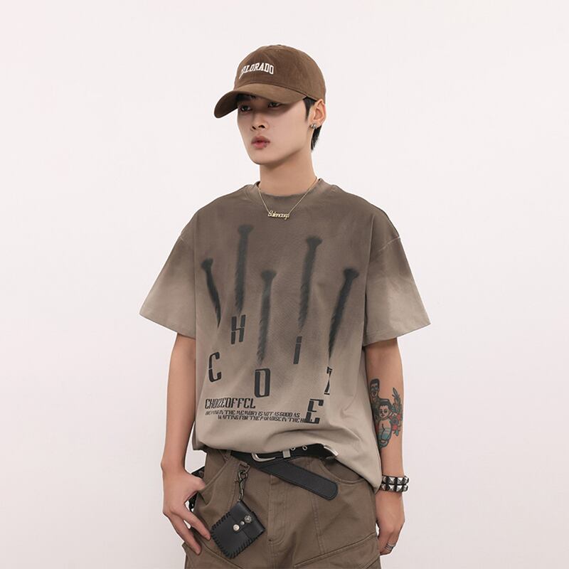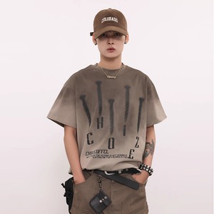 BTSG茶色グラデーション英字プリント半袖Tシャツ