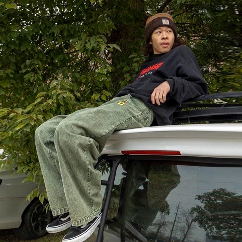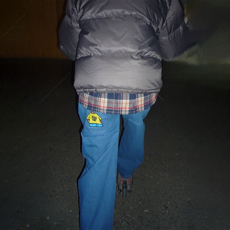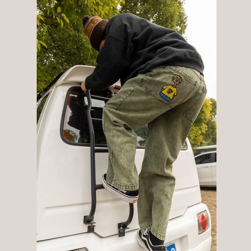 ストリート系抽象人柄刺しゅう入りデニムパンツ