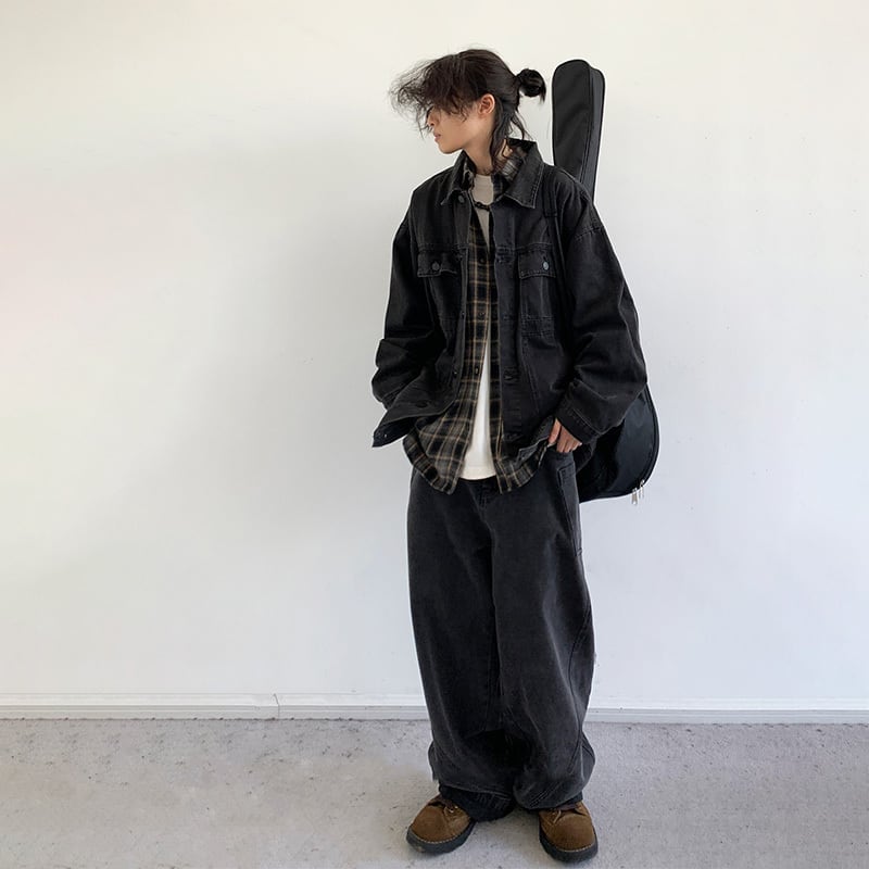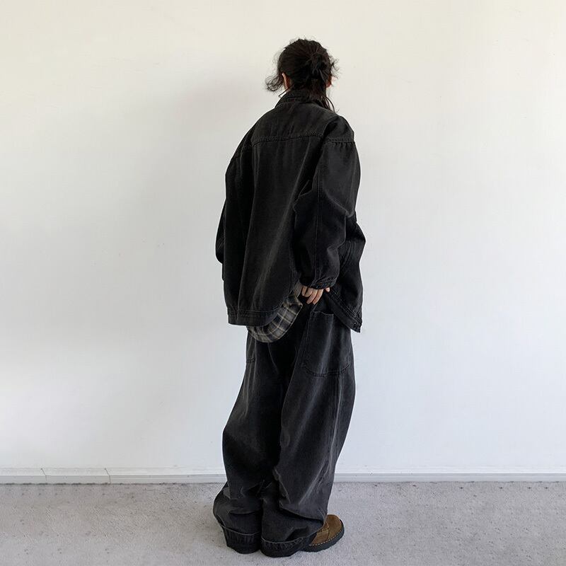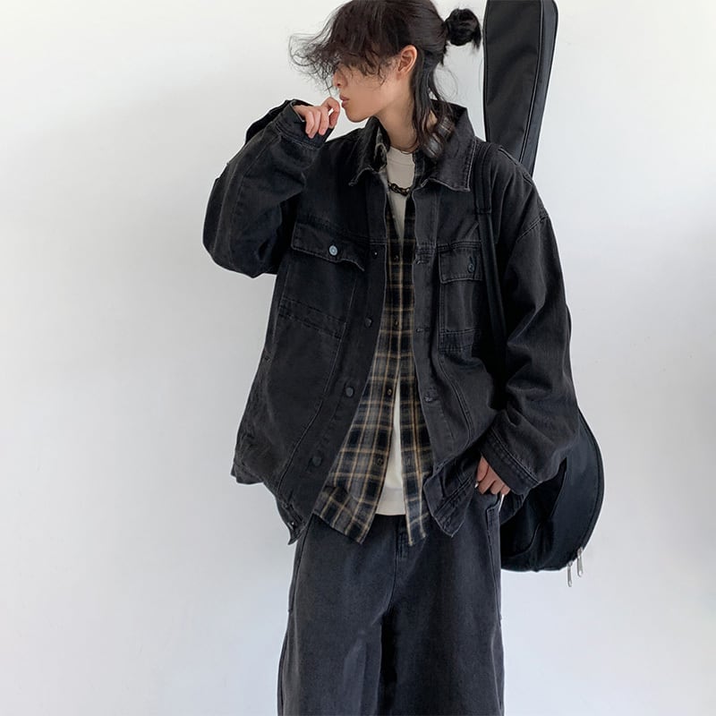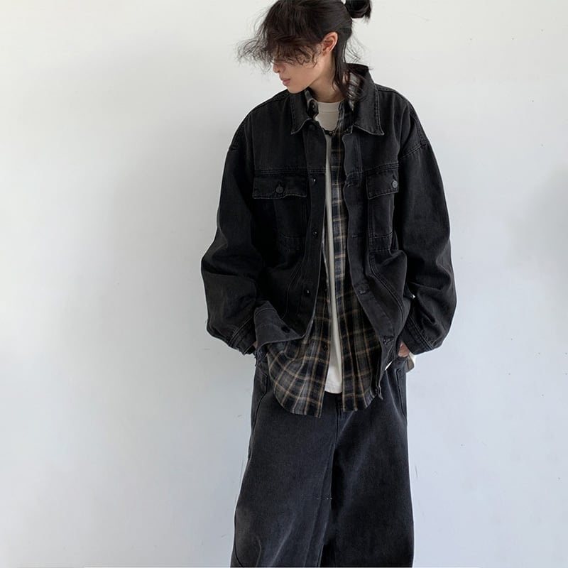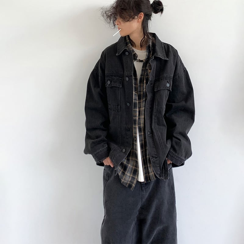 jiwuus暗黒色合わせやすいデニムジャケット【M0058】