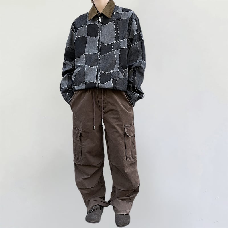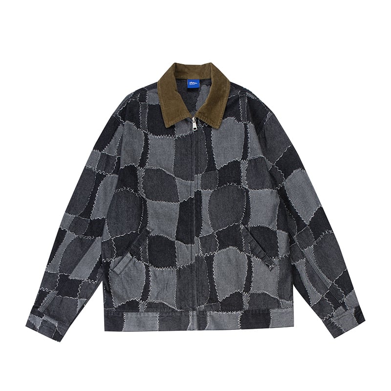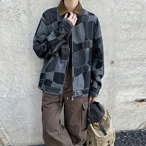 MAGMANSヴィンテージ格子柄切り替えデニムジャケット【M0033】