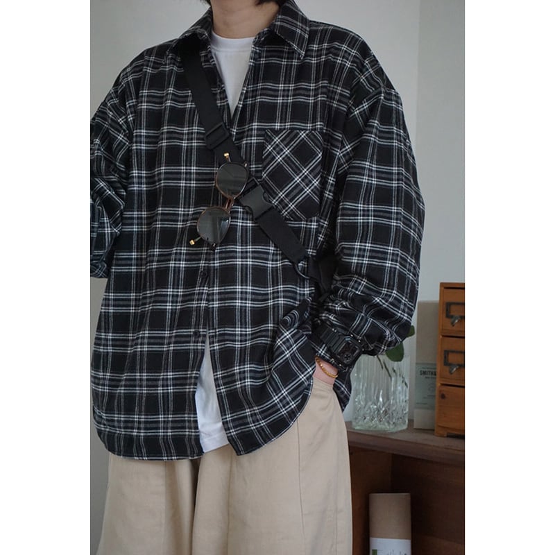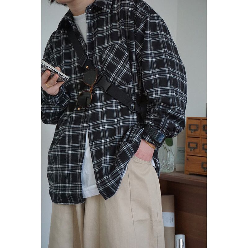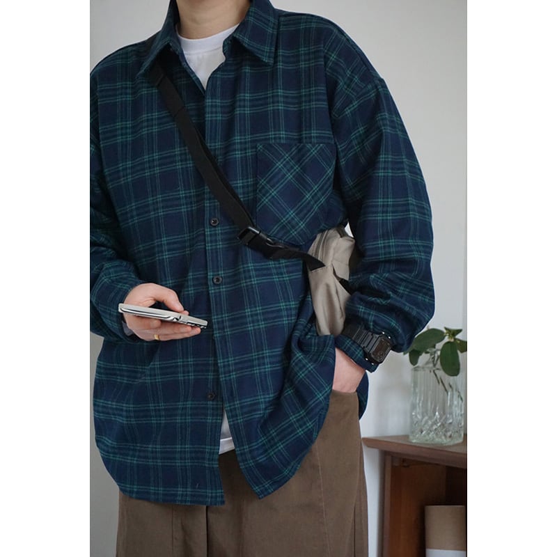 Have fun in southp濃い色チェック柄長袖シャツ