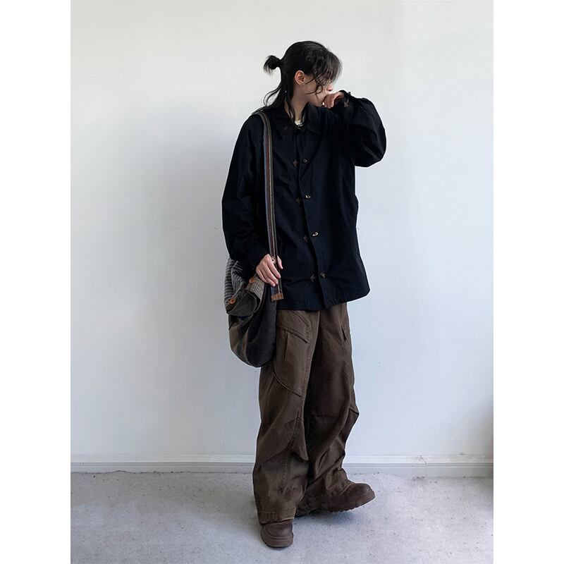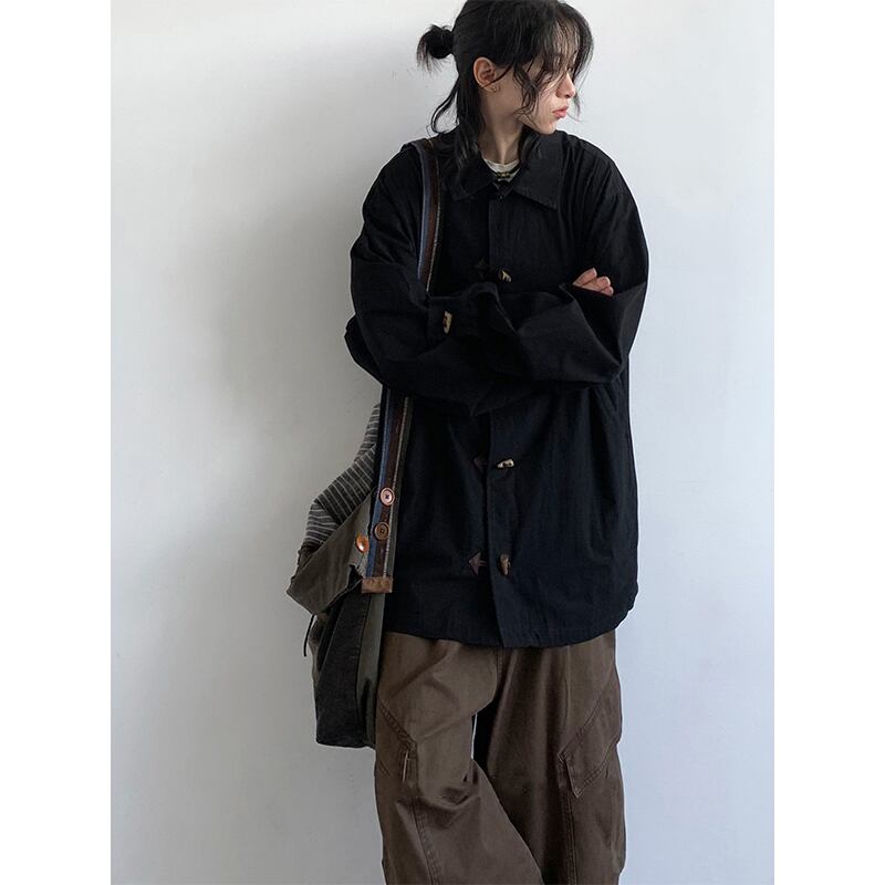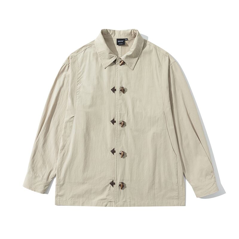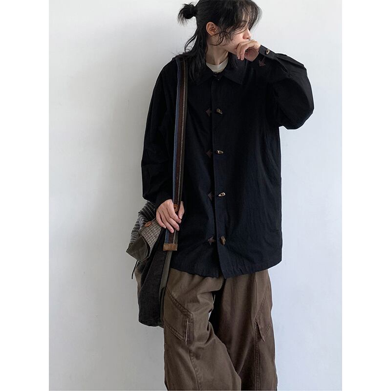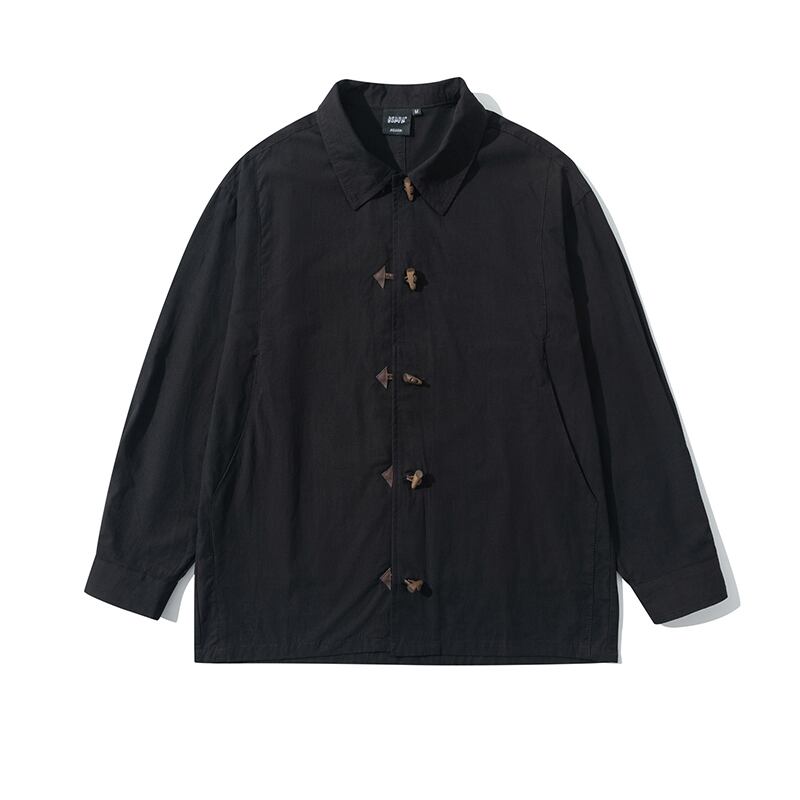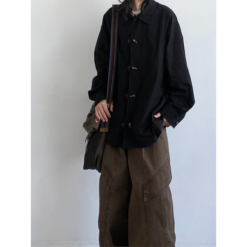 jiwuus全2色角ボタンシンプル長袖シャツ