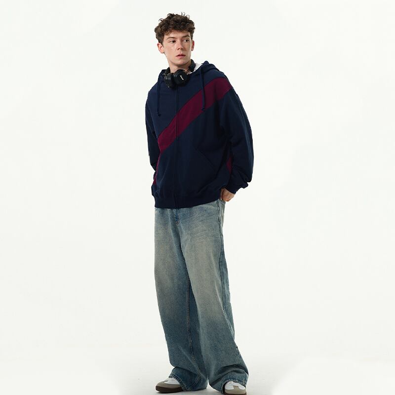 MADWITCH紺色と葡萄色切り替えジップパーカー