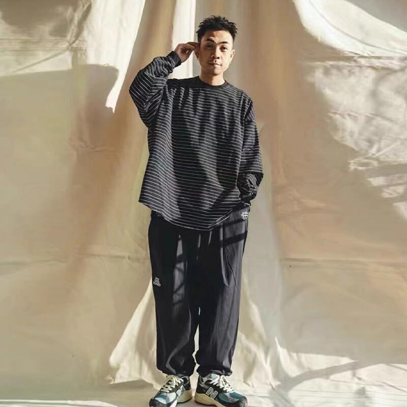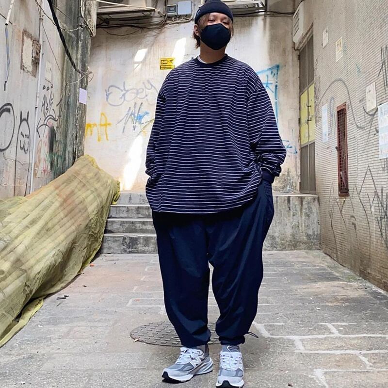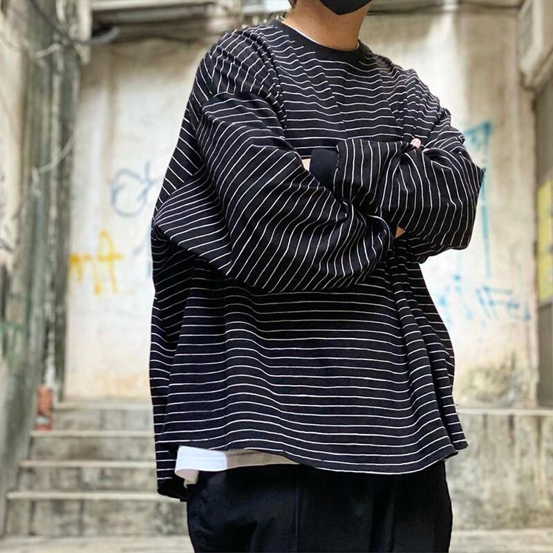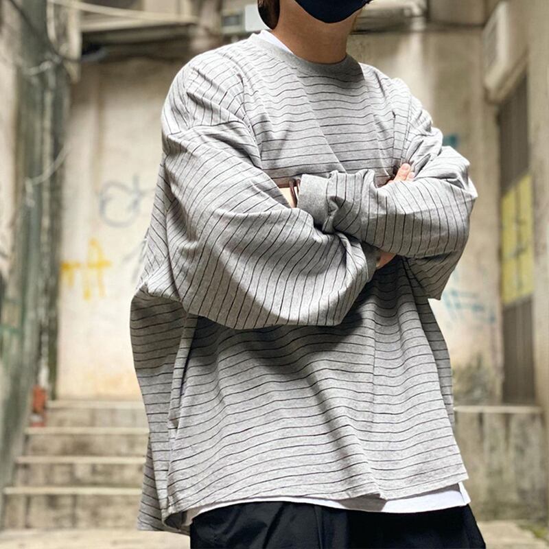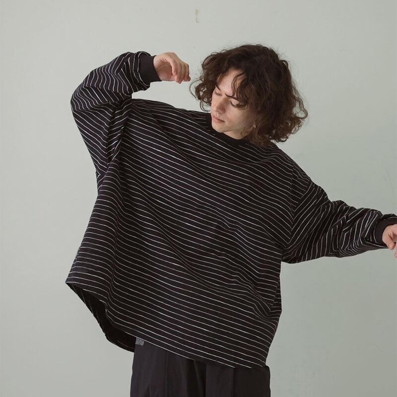 オーバーサイズボーダー柄長袖Tシャツ