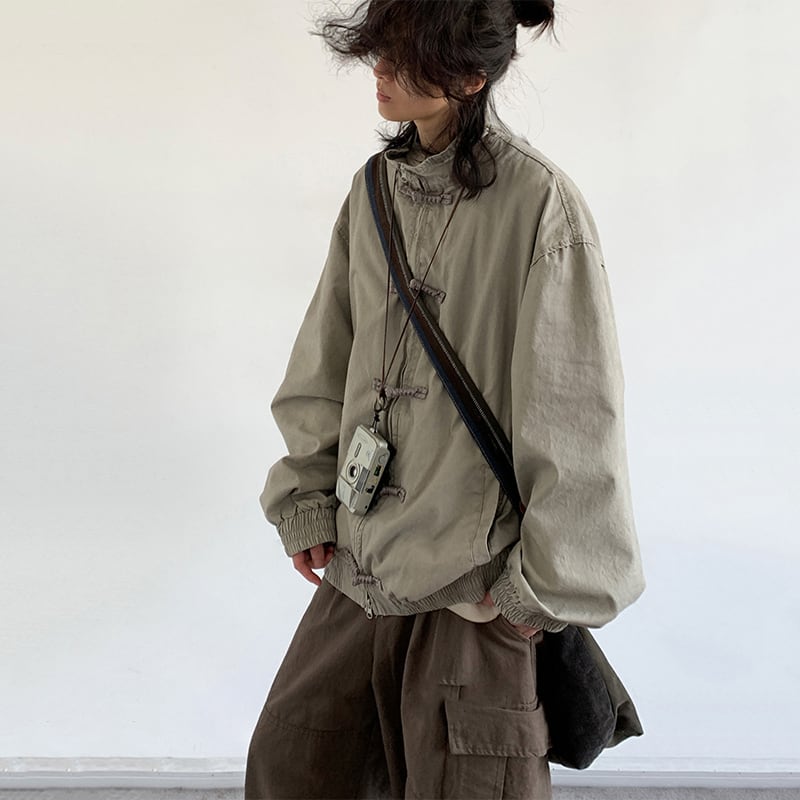 jiwuusスタンドカラー無地ジャケット