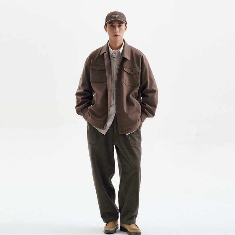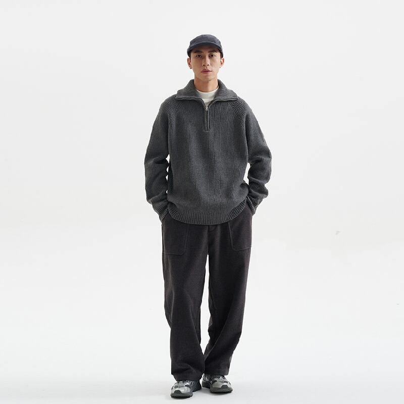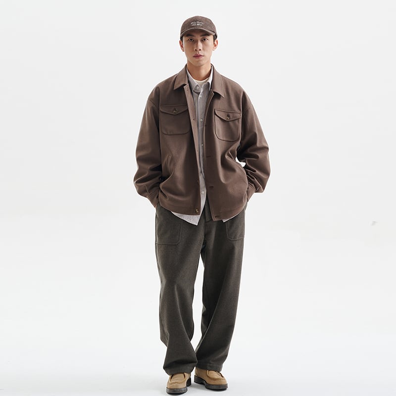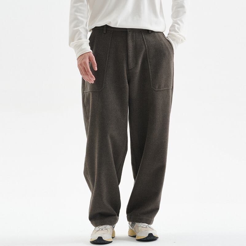 ドレープストレートカジュアルウールパンツ