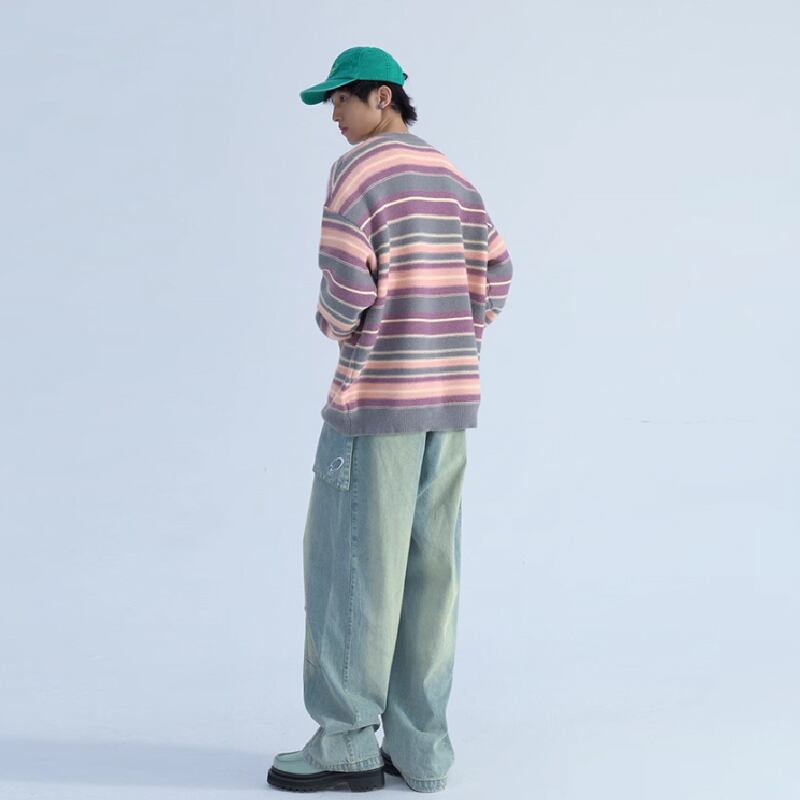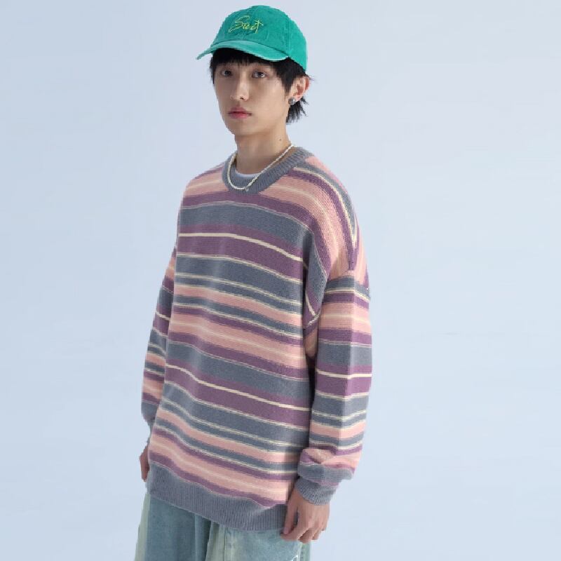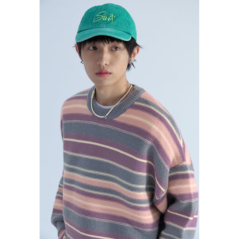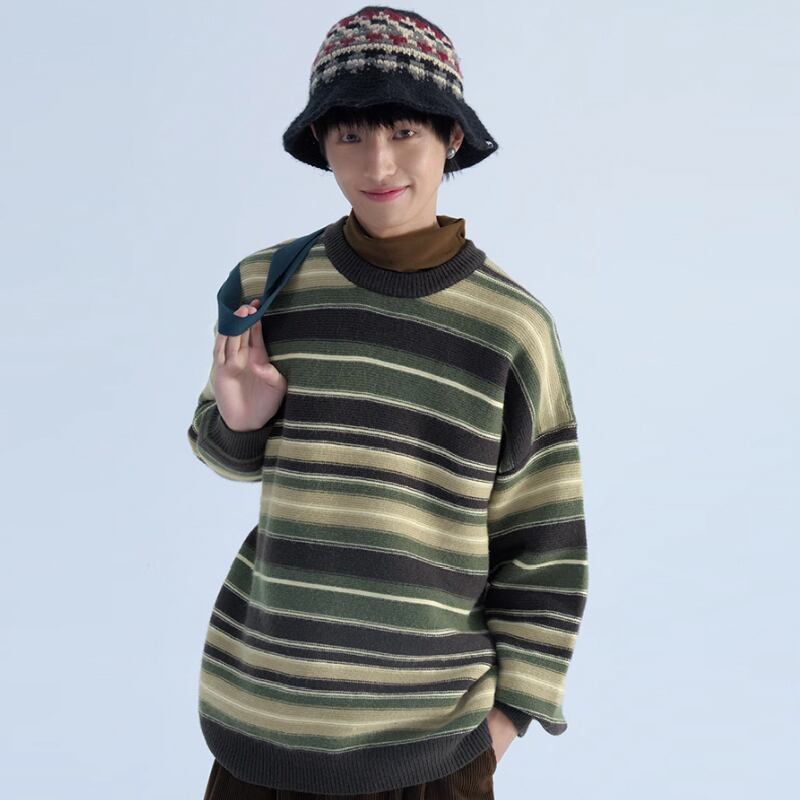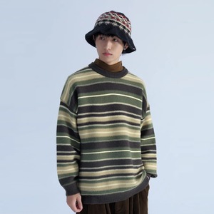 Mentmate全2色カジュアルボーダー柄ニットセーター