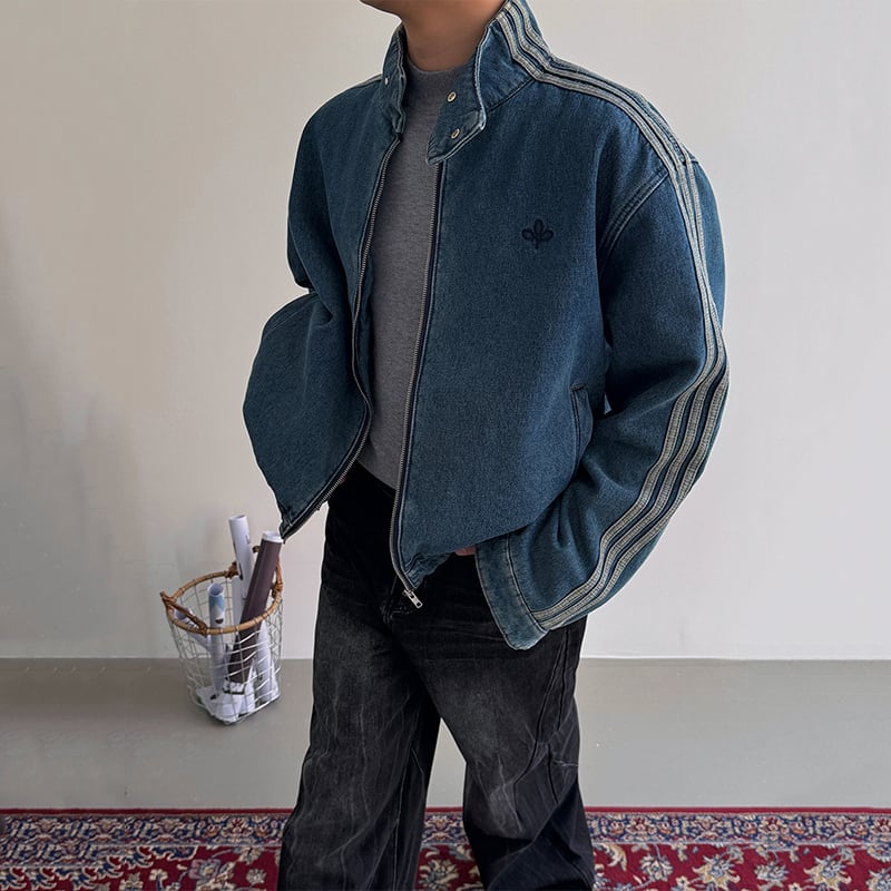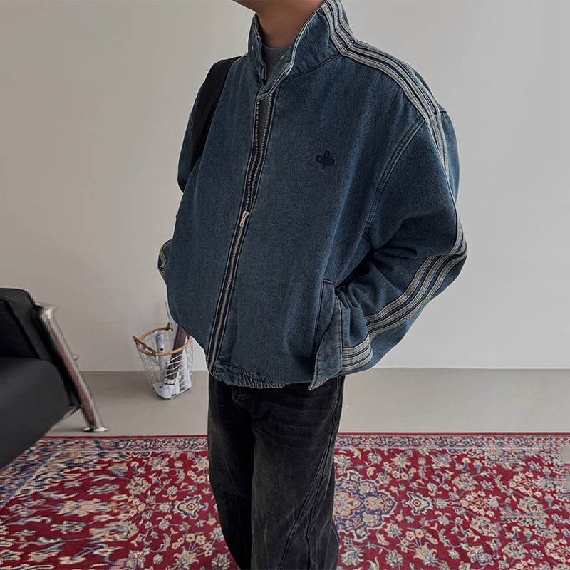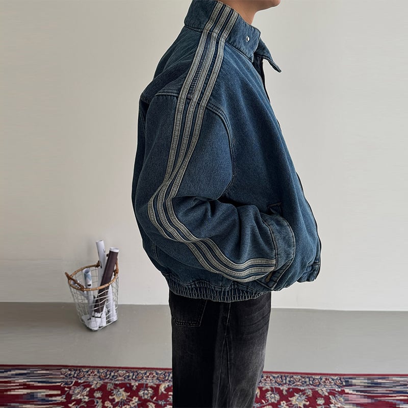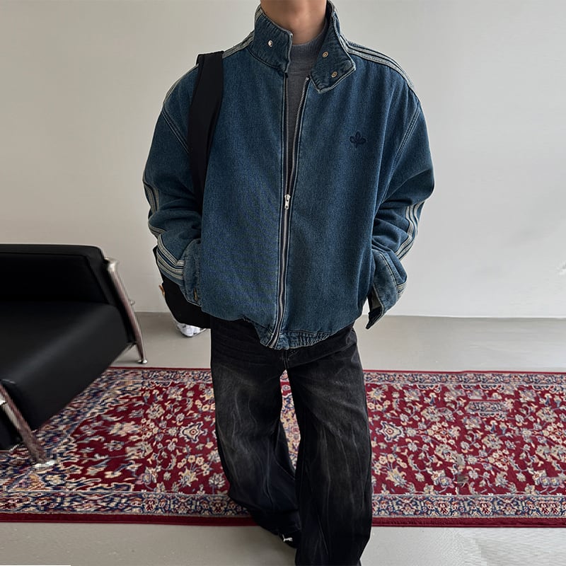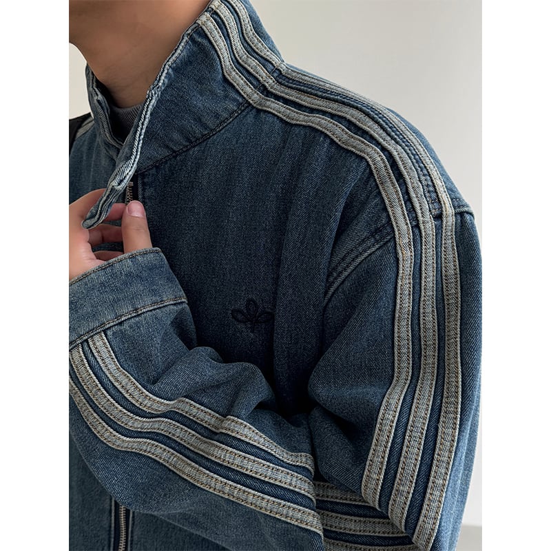 19 STUDIOスタンドカラー裏起毛ストライプデニムジャケット