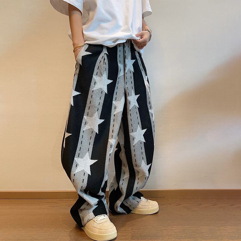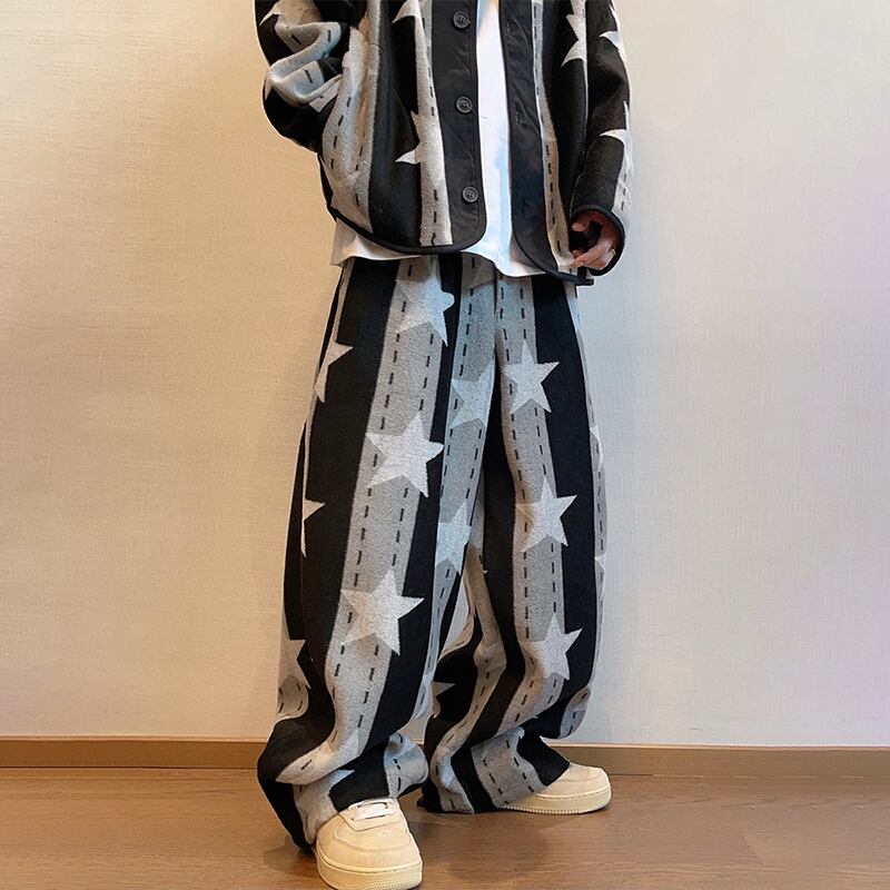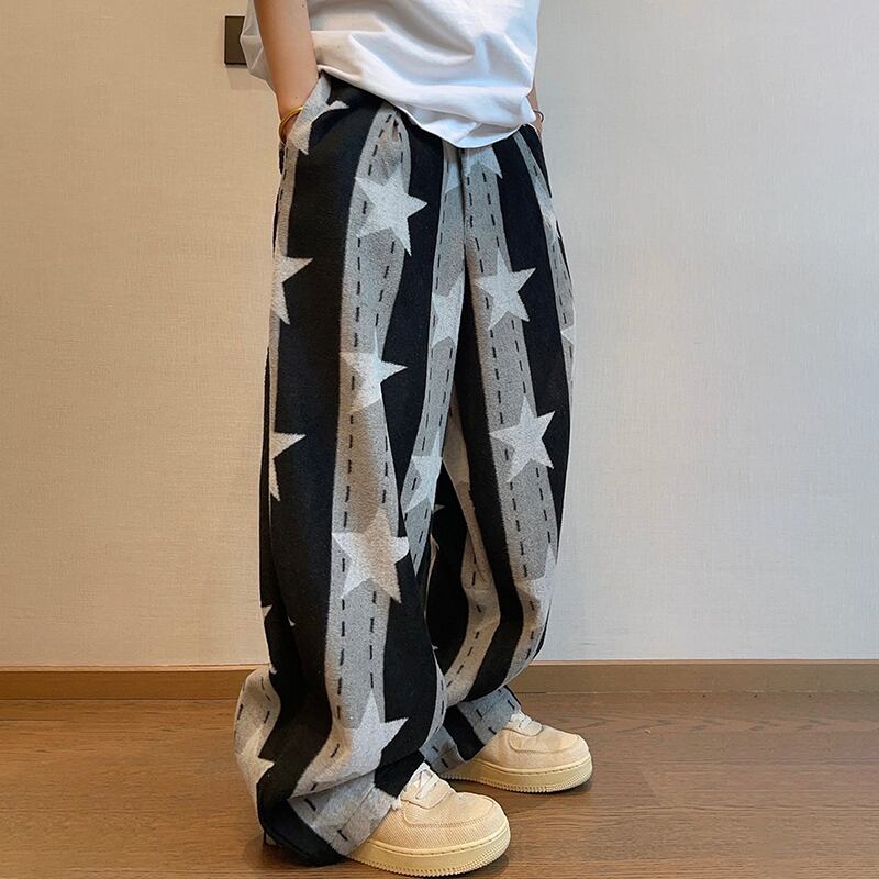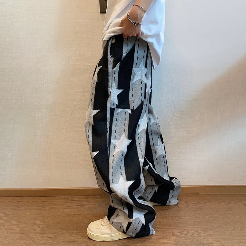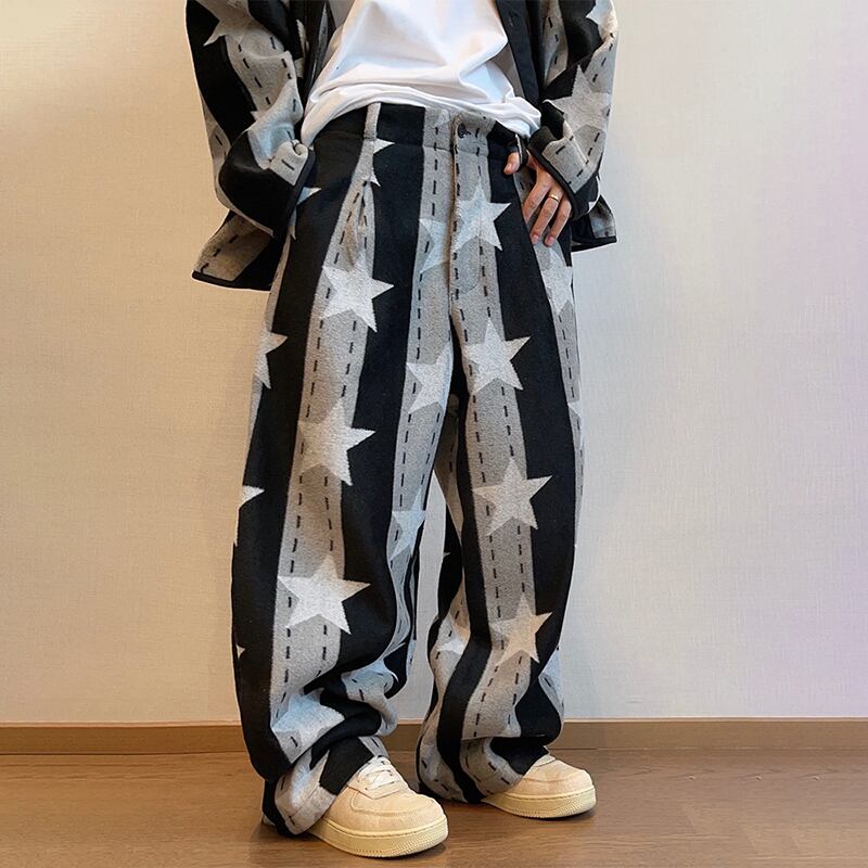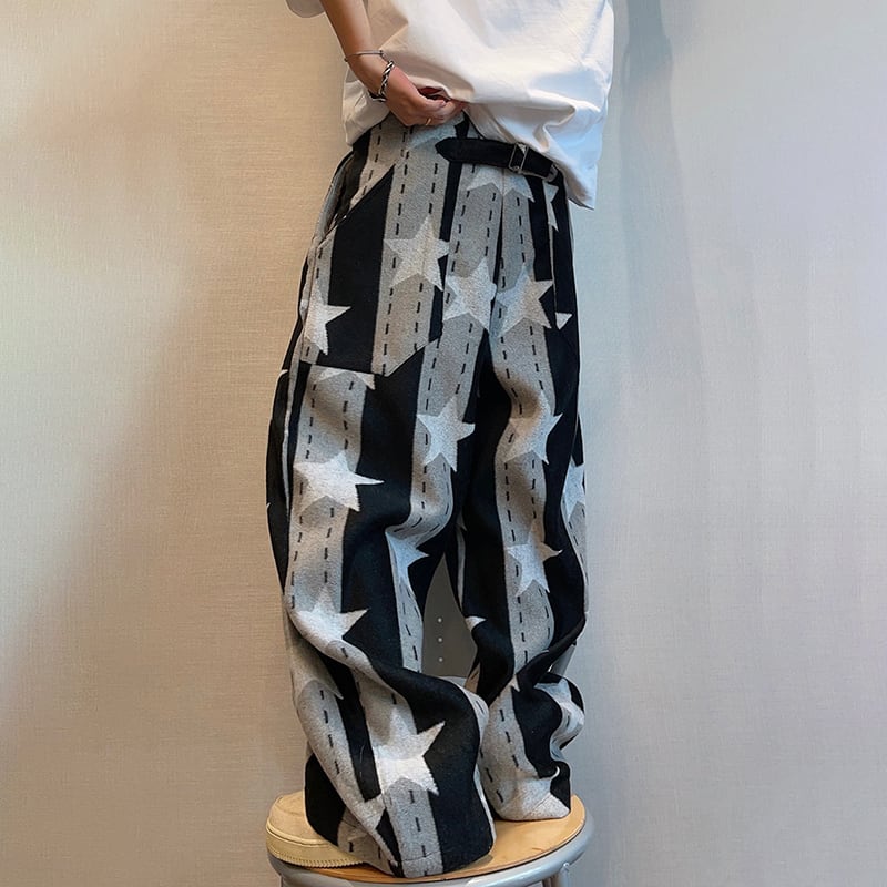 dannyandzeeスターデザイン縦縞ワイドパンツ
