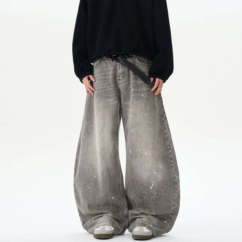 KISKOスプラッターインクワイドレッグデニムパンツ